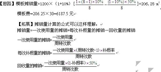 4.某施工企業施工時使用自有模板,已知一次使用量為1200┫,模板價格為30元/┫,若周轉次數為8,補損率為10%,施工損耗為10%,不考慮支、拆、運輸費,則模板費為( )元。