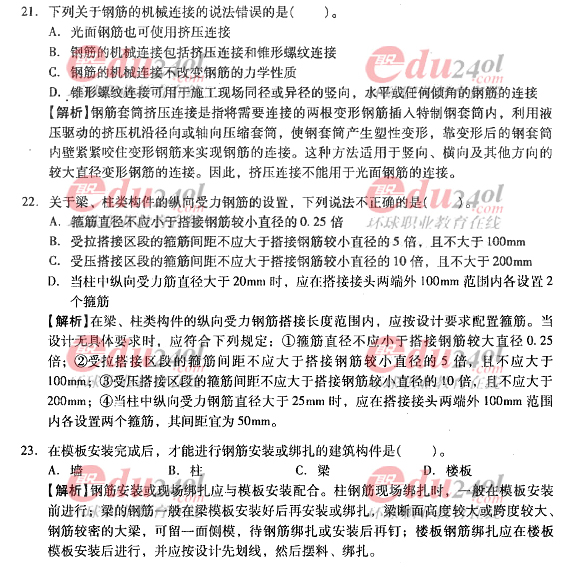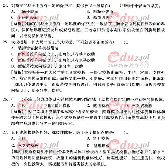 - 2024年一級造價師《土建計量》考試真題及答案31-40題2024-10-23