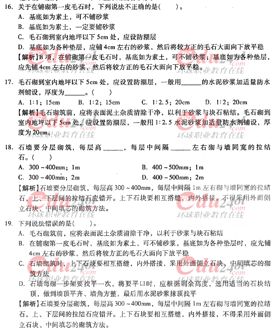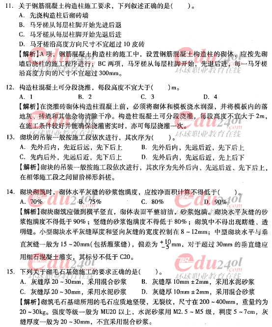 摘要 2012年造價工程師《技術與計量》(土建)過關必做試題及答案(十)主要內(nèi)容為第四章:工程施工技術,第三節(jié):砌筑工程施工,單項選擇題、多項選擇題以及答案解析。