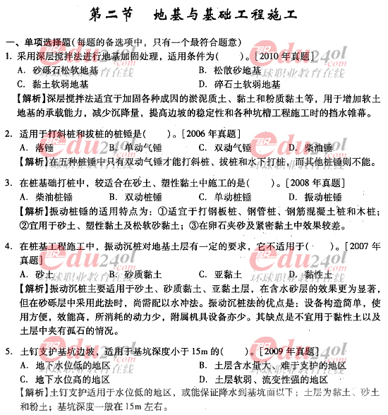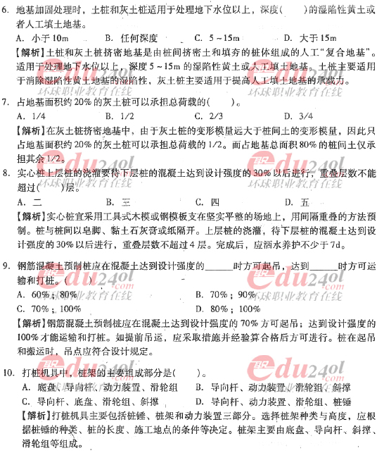2012年造價工程師《技術與計量》(土建)過關必做試題及答案(1)