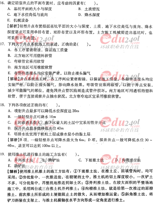 摘要 2012年造價工程師《技術與計量》(土建)過關必做試題及答案(八)主要內容為第四章:工程施工技術,第一節:土石方工程施工單項選擇題、多項選擇題以及答案解析。