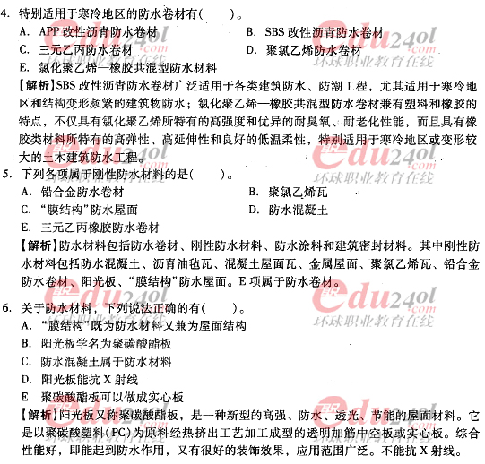 摘要 2012年造價工程師《技術與計量》(土建)過關必做試題及答案(七)主要內容為第三章工程材料,第三節:裝飾材料;第四節:防水材料,單項選擇題、多項選擇題以及答案解析。