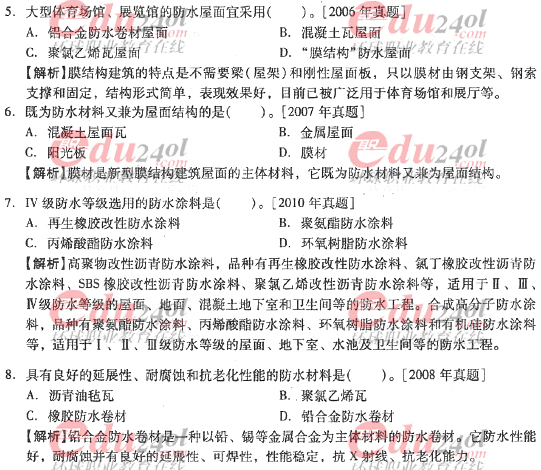 摘要 2012年造價工程師《技術與計量》(土建)過關必做試題及答案(七)主要內容為第三章工程材料,第三節:裝飾材料;第四節:防水材料,單項選擇題、多項選擇題以及答案解析。