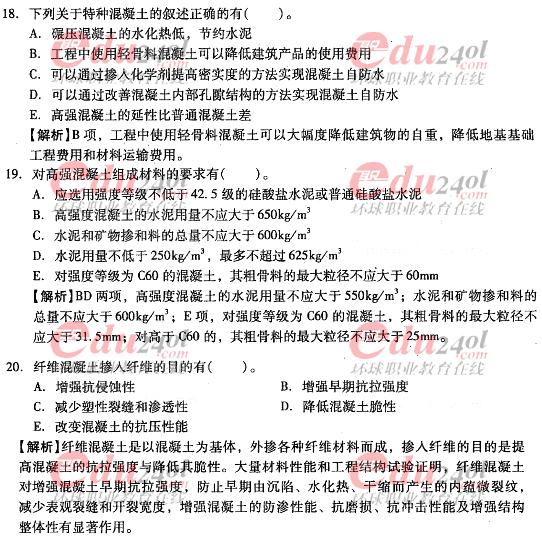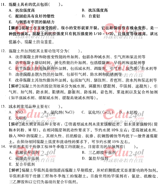 摘要 2012年造價工程師《技術與計量》(土建)過關必做試題及答案(六)主要內容為第三章工程材料,第二節結構材料單項選擇題、多項選擇題以及答案解析。