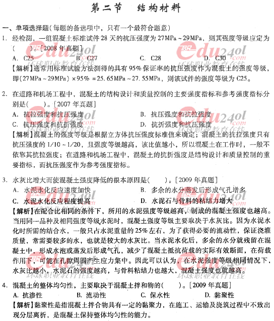 摘要 2012年造價(jià)工程師《技術(shù)與計(jì)量》(土建)過(guò)關(guān)必做試題及答案(六)主要內(nèi)容為第三章工程材料,第二節(jié)結(jié)構(gòu)材料單項(xiàng)選擇題、多項(xiàng)選擇題以及答案解析。