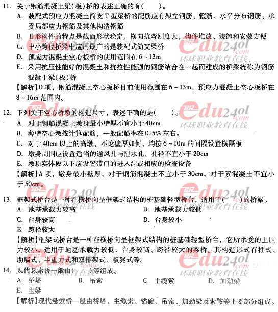 摘要 2012年造價工程師《技術與計量》(土建)過關必做試題及答案(四)主要內容為第二章工程構造第三節橋梁與涵洞工程;第四節地下工程單項選擇題、多項選擇題以及答案解析。