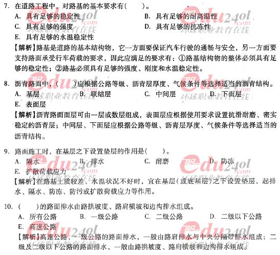 摘要 2012年造價工程師《技術與計量》(土建)過關必做試題及答案(三)主要內容為第二章工程構造第二節道路工程單項選擇題、多項選擇題以及答案解析。