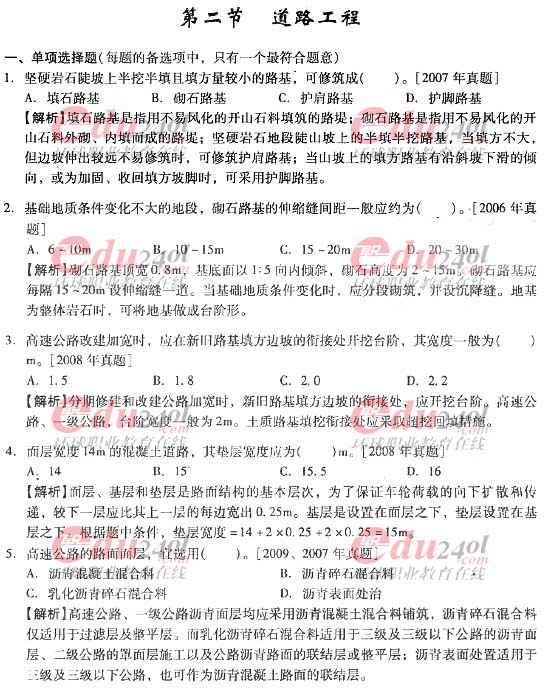 摘要 2012年造價工程師《技術與計量》(土建)過關必做試題及答案(三)主要內容為第二章工程構造第二節道路工程單項選擇題、多項選擇題以及答案解析。