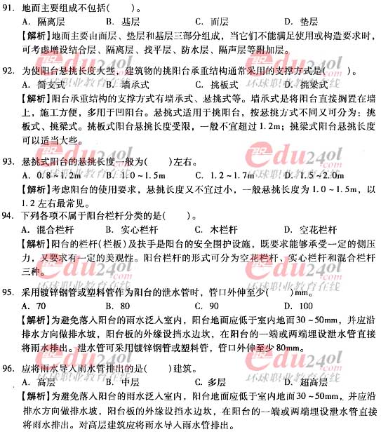2012年造價工程師《技術與計量》(土建)過關必做試題及答案(10)