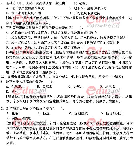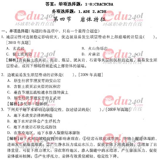 摘要 2012年造價工程師《技術與計量》(土建)過關必做試題及答案(一)主要內容為第一章工程地質第一節工程地址對建設工程的影響;第二節地質巖性;第三節地質構造;第四節巖體特征單項選擇題、多項選擇題以及答案解析。