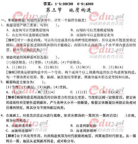 摘要 2012年造價工程師《技術與計量》(土建)過關必做試題及答案(一)主要內容為第一章工程地質第一節工程地址對建設工程的影響;第二節地質巖性;第三節地質構造;第四節巖體特征單項選擇題、多項選擇題以及答案解析。