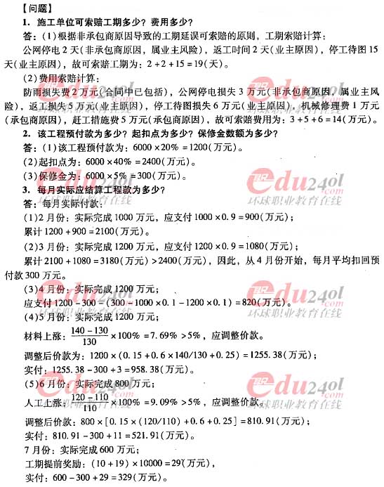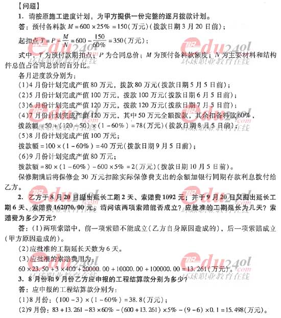 2012年造價工程師《案例分析》過關必做試題及答案(十七)