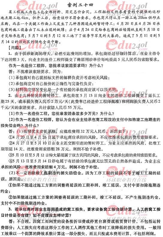 2012年造價工程師《案例分析》過關必做試題及答案(十六)