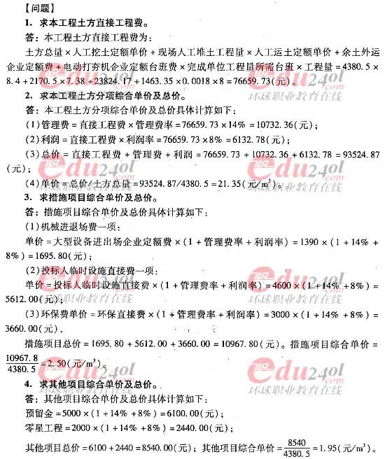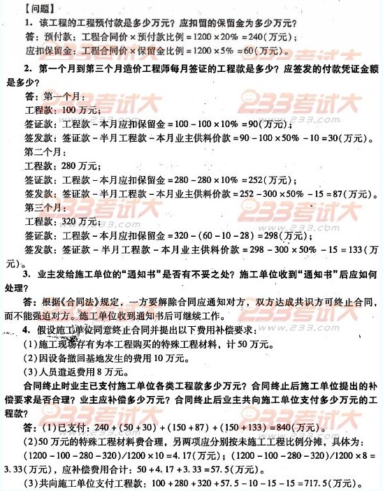 2012年造價工程師《案例分析》過關必做試題及答案(十五)