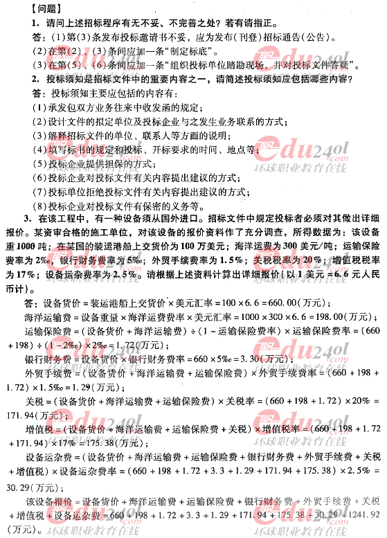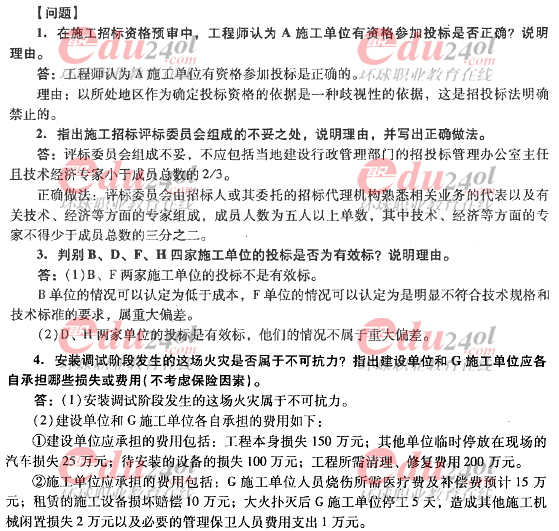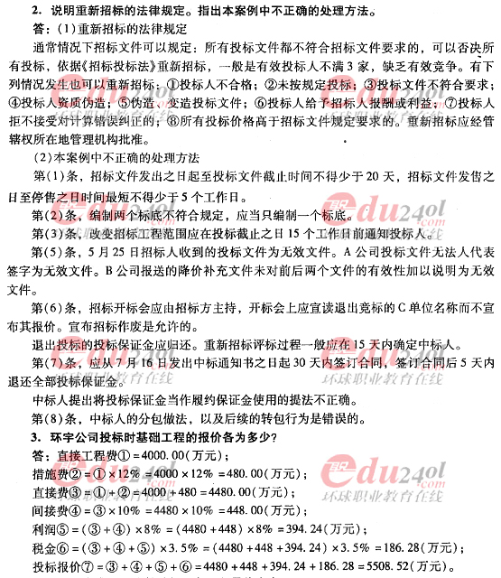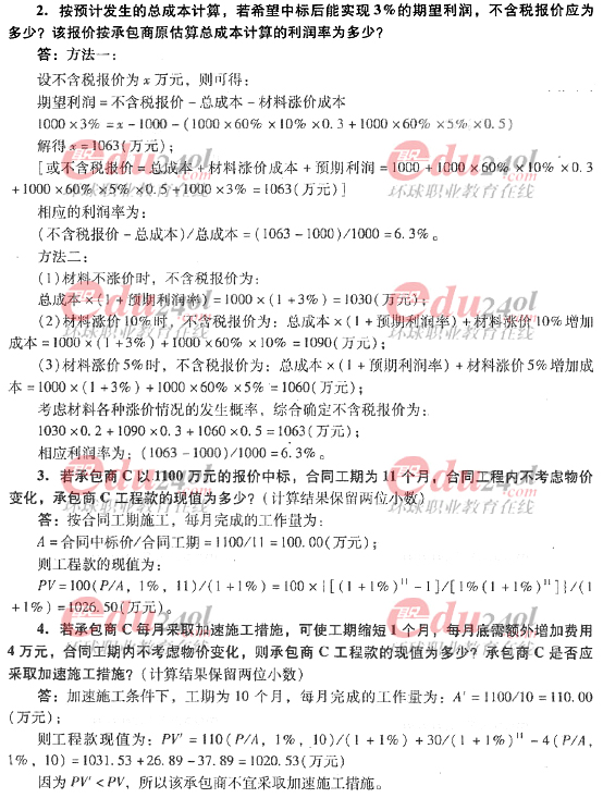 2012年造價工程師《案例分析》過關必做試題及答案(十一)