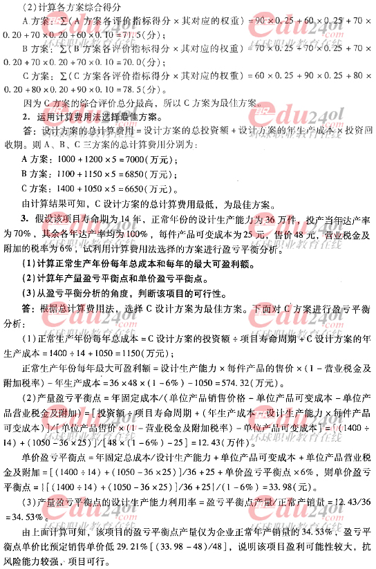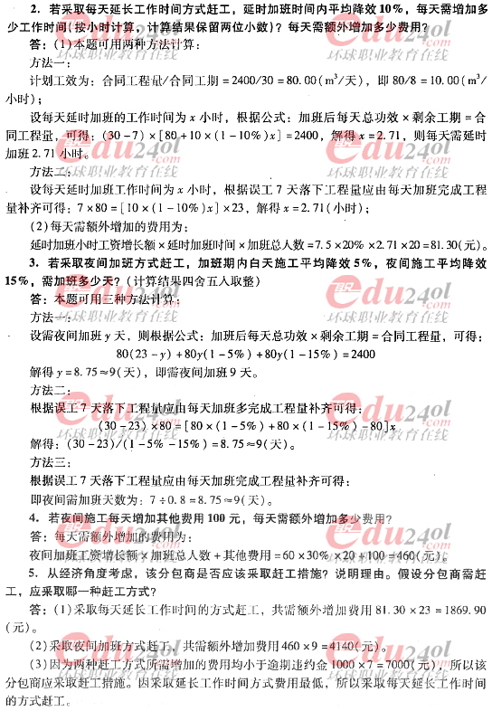 2012年造價工程師《案例分析》過關必做試題及答案(四)