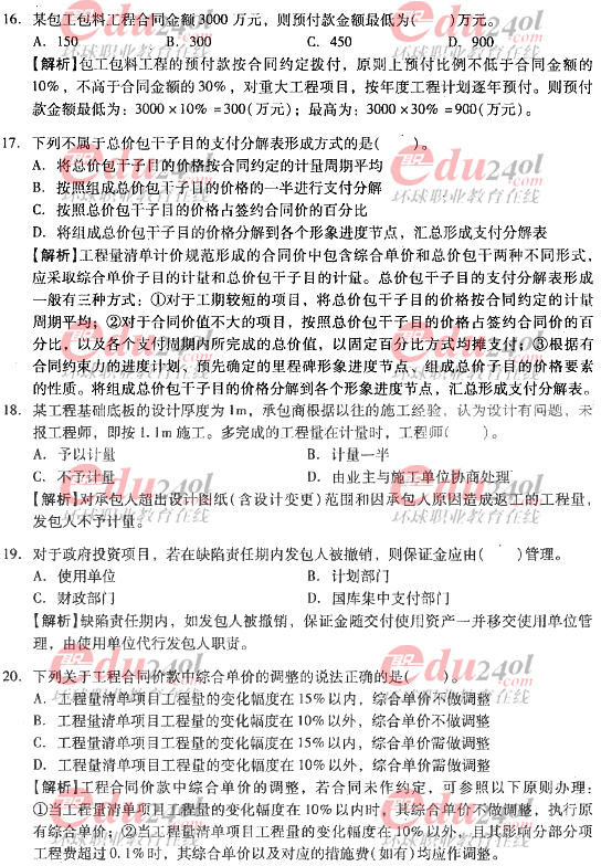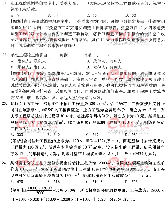 2012年造價工程師《計價與控制》過關(guān)必做試題及答案(十六)