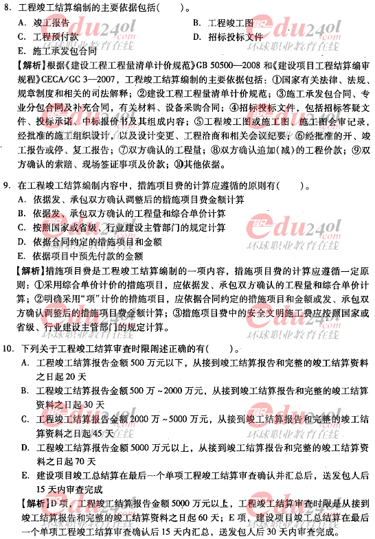 2012年造價工程師考試各科目過關(guān)必做試題及答案匯總
