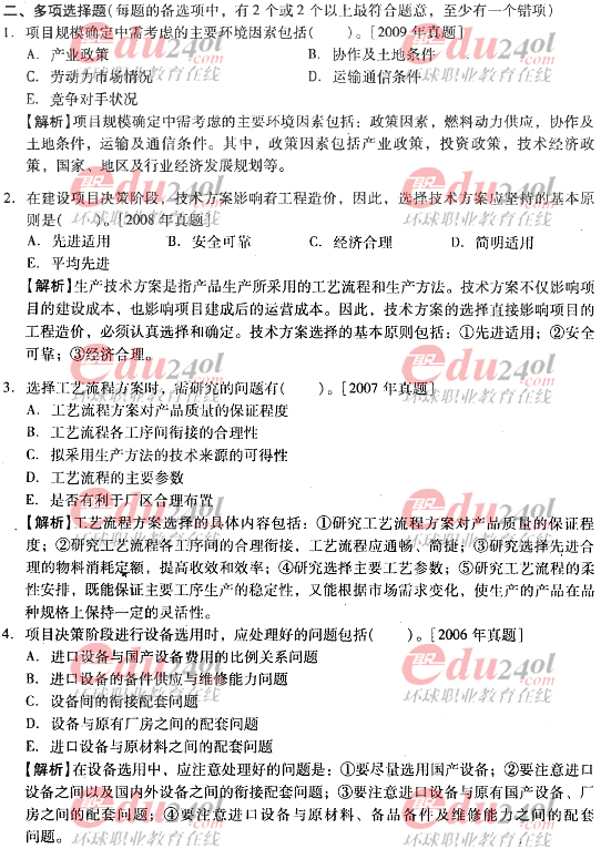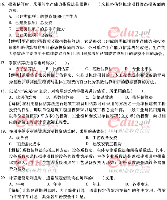 2012年造價(jià)工程師考試各科目過關(guān)必做試題及答案匯總