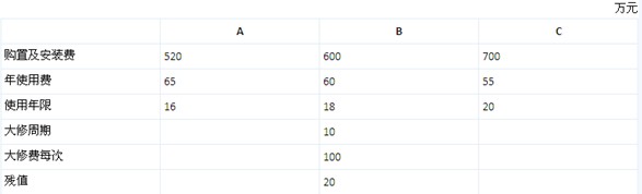 2、若只考慮購置及安裝費、年使用費,計算B方案的年費用,已知方案A、C的年費用為123.88、125.88,按年費用選擇方案。