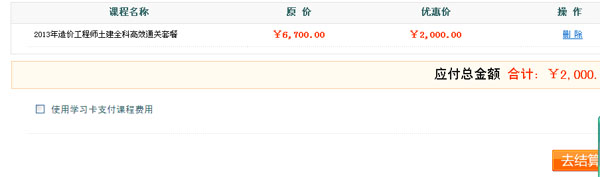 2013年造價工程師高效通關套餐優惠學員支付操作步驟:
