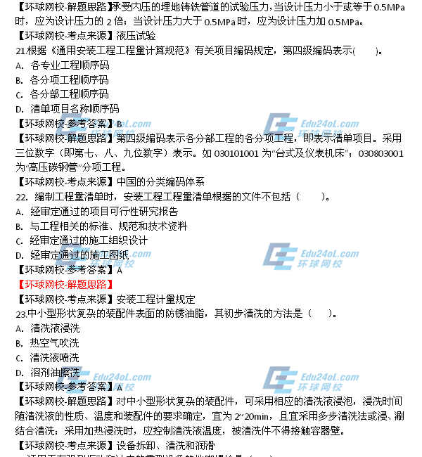 - 2025年一級造價師《安裝計量》真題答案21-30題2025-10-23
