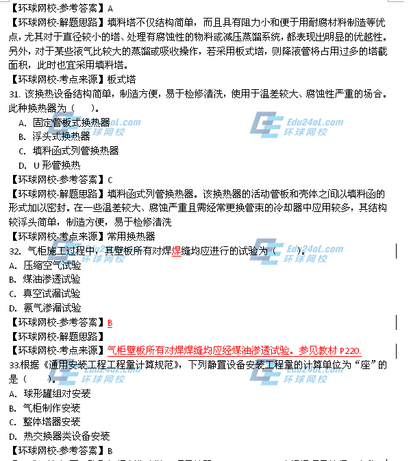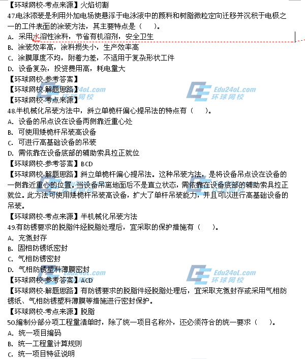 - 2025年一級造價師《安裝計量》真題答案41-50題2025-10-23