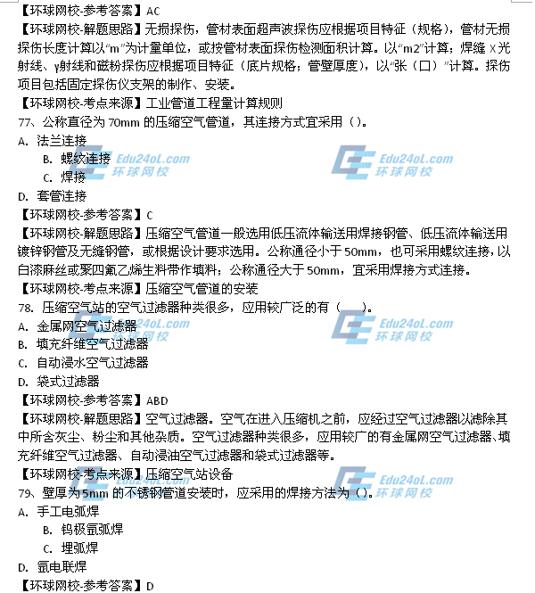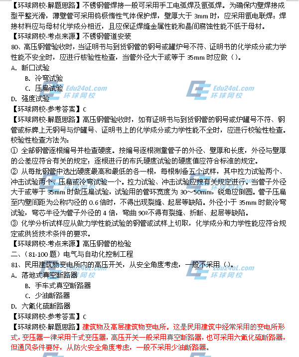 - 2025年一級造價師《安裝計量》真題答案61-70題2025-10-23