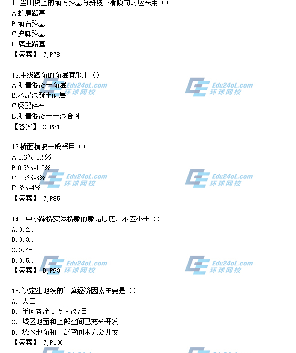 - 2025年一級造價師《土建計量》考試真題答案51-60題2025-10-22
