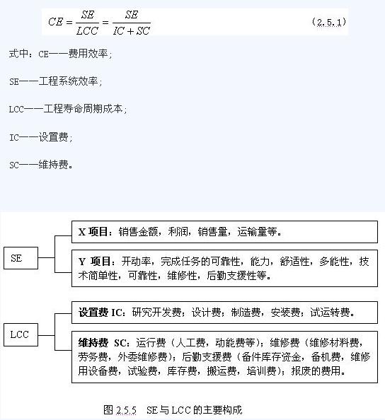由式(2.5.1)可知,如果CE公式的分子為一定值,可認為壽命周期成本越低越好。從這方面來看,CE公式和傳統的成本法有著相同的基點。