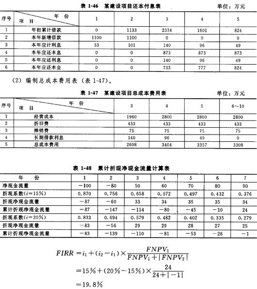2.按照參考答案中表1-46,表1-47的格式編制還本付息表和總成本費(fèi)用表。