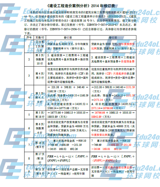 2014年造價工程師《案例分析》教材新舊對比>>教材修改詳細說明