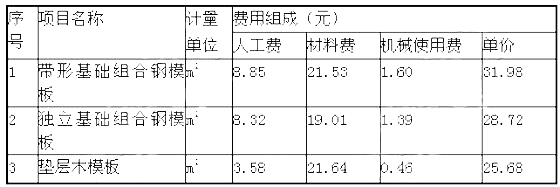 依據《建設工程工程量清單計價規范》計算原則,以人工費、材料費和機械使用費之和為基數,取管理費率5%、利潤率4%;以分部分項工程量清單計價合計和模板及支架清單項目費之和為基數,取臨時設施費率1.5%、環境保護費率0.8%、安全和文明施工費率1.8%。