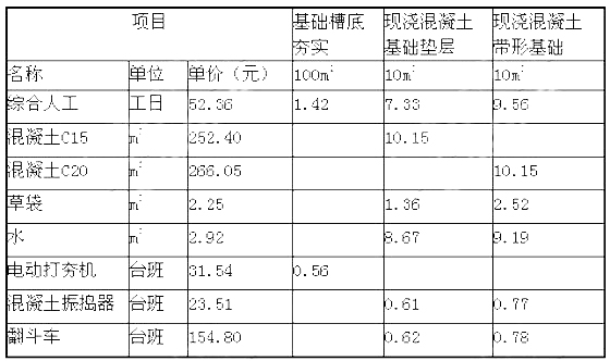 3.依據提供的基礎定額數據,計算混凝土帶形基礎的分部分項工程量清單綜合單價,填入答題紙表6. Ⅰ.3“分部分項工程量清單綜合單價分析表”,并列出計算過程。