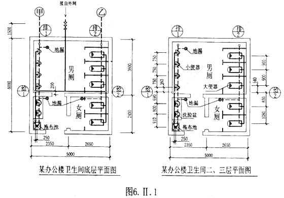 1.某辦公樓衛生問給排水系統工程設計,如圖6.Ⅱ所示。
