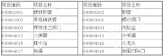 給水管道系統及衛生器具有關分部分項工程量清單項目的統一編碼,見下表: