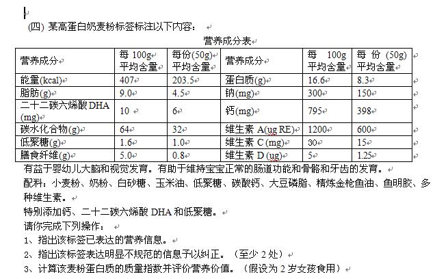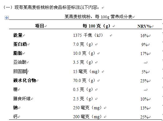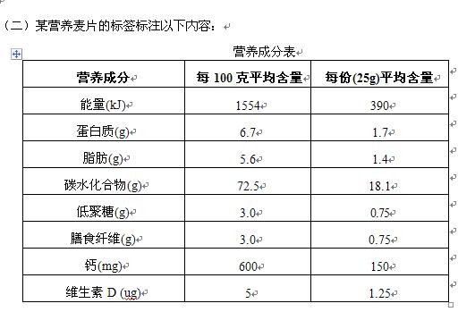 (三)現有某營養麥片的食品標簽,標注有以下主要內容: