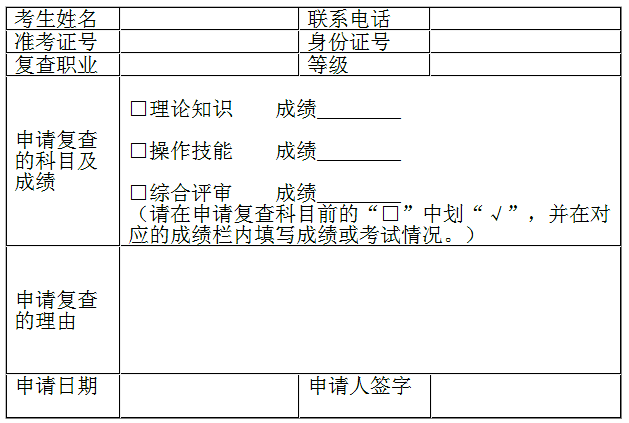 各職業(yè)技能鑒定所受理成績復(fù)查申請的相關(guān)信息