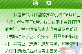江西省新職業技能鑒定考試將于6月13日舉行。考生可于6月9-12日在網上自行打印準考證。