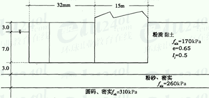 9.某高層筏板式住宅樓的一側(cè)設(shè)有地下車庫,兩部份地下結(jié)構(gòu)相互連接,均采用筏基,基礎(chǔ)埋深在室外地面以下10m,住宅樓基底平均壓力Pk為260kN/m2,地下車庫基底平均壓力Pk為60kN/m2,場區(qū)地下水位埋深在室外地面以下3.0m,為解決基礎(chǔ)抗浮問題,在地下車庫底板以上再回填厚度約0.5m,重度為35kN/m3的鋼碴,場區(qū)土層的重度均按 20kN/m3考慮,地下水重度按10kN/m3取值,根據(jù)《建筑地基基礎(chǔ)設(shè)計(jì)規(guī)范》(GB50007― 2002)計(jì)算,住宅樓地基承載力ƒa最接近以下( )選項(xiàng)。 (A)285kPa