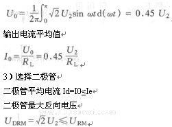 由圖8.6.4可知,輸出電壓和輸出電流均是半波變化的,其大小用平均值衡量。設u2=√2U0 sin wt輸出電壓平均值