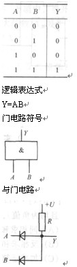 與邏輯:輸入邏輯變量A與B同時為“1”時,輸出邏輯變量Y才為“1”,否則Y為‘0’。