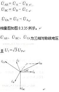 大小相同,相位互差l20°,稱為三相對稱電壓。相量圖如圖8.3.35所示。