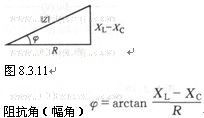 R、L、C串聯電路各電壓、電流的相量圖如圖8.3.12所示。可以看出,電壓u和電流i之間的相位差角也是阻抗角φ,當φ>0,電壓導前電流,呈感性電路;φ<0,電流導前電壓,呈容性電路;φ=0,電壓、電流同相,呈電阻性電路。