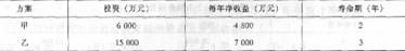 NPV乙=一15000×[1+(P/F,10%,3)]+7000(P/A,lO%,6)=4220萬元