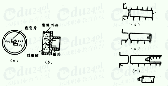 3) 孔底涂一層環氧樹膠后,用安裝器將檢查合格的應變計(見下圖)送至孔底并粘貼好。