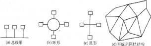 如圖7.2.2所示,局域網的基本拓撲結構分為總線形、環形和星形三種(圖(a)、圖(b)和圖(c))。廣域網大多數采用不規則的網狀結構(圖(d))。