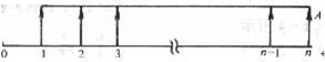 (3)等額年金(記為A)。即指發生在(或折算為)某一特定時間序列各計算期末(不包括零期)的等額資金序列的價值。例如在圖9.1.2中除0點外,從1至n期末的資金流量都相等就為等額年金。