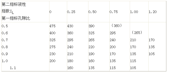 沿海地區淤泥和淤泥質土承載力基本值(kPa) 表7-8
