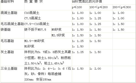 剛性基礎(chǔ)臺(tái)階寬高比的允許值 表7-19